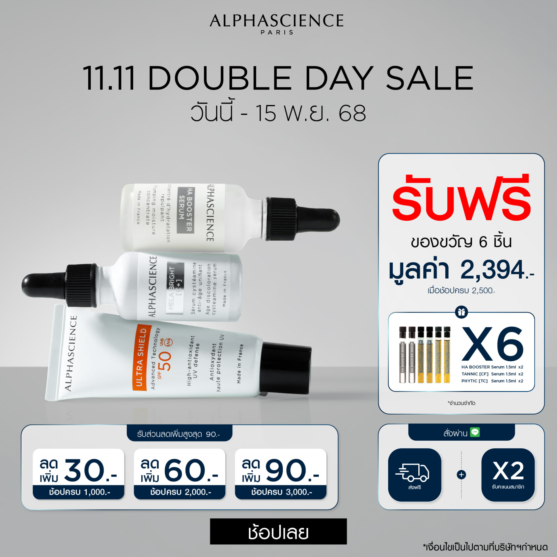 ส่งฟรี! ทุกออเดอร์ไม่มีขั้นต่ำ เมื่อสั่งซื้อผ่านเว็บไซต์เท่านั้น